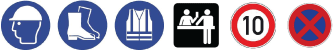 • 必须遵守安全警示牌中的指令和禁止信息标志。
